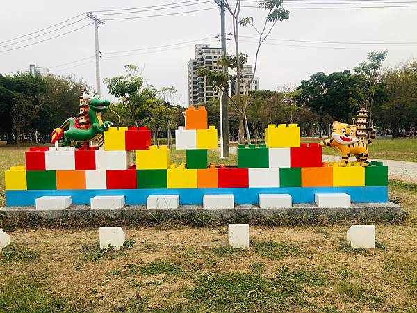從翠華路 高鐵🚄停車場出來就能看到這個樂高積木的 QQ版龍🐲虎🐯塔 色彩繽紛討喜